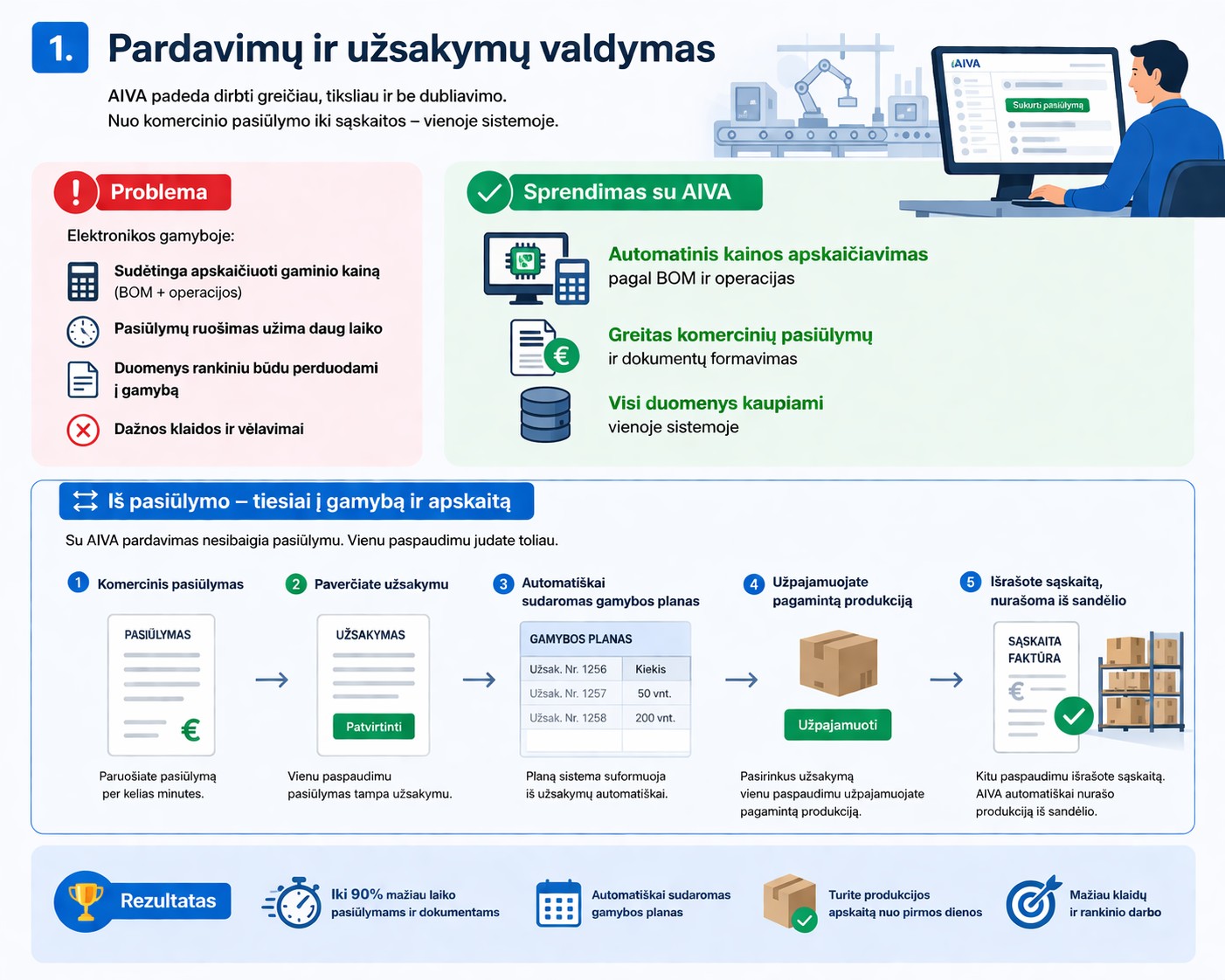 Visas sprendimų aprašymas: AIVA gamybos valdymo sprendimai