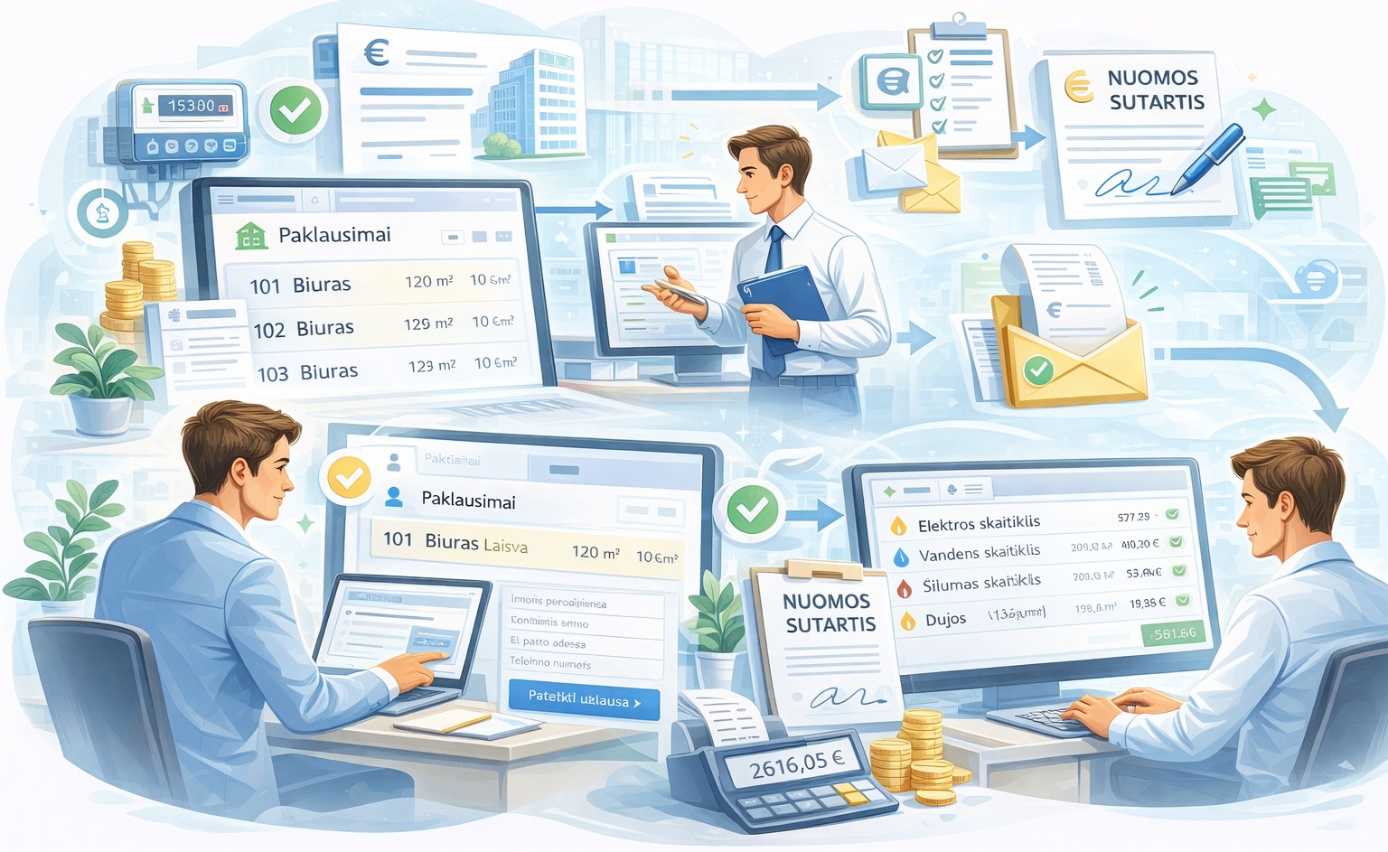 Registracija ir savitarna per svetainę padeda sukurti modernesnį, patogesnį ir klientams aiškesnį nuomos bei paslaugų valdymo procesą.